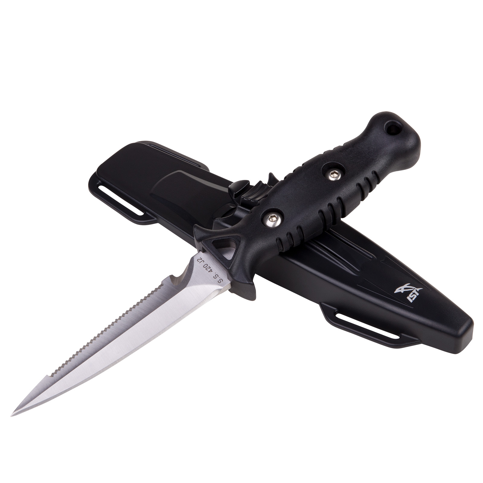 - Case with quick release tab for one-handed operation and rubber knife straps included